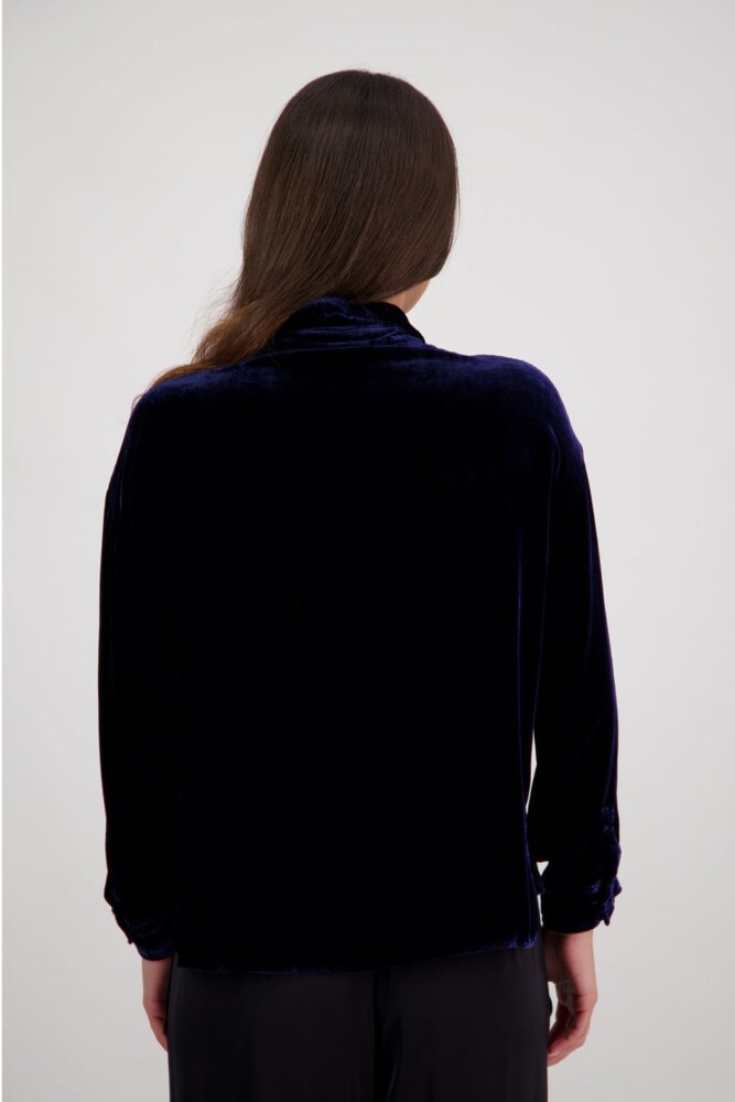Crafted from a luxe silk–viscose velvet blend, the Ridge shirt elevates a classic shirt silhouette. Designed with a collared, button-through front, full-length sleeves, a longer back hem with split sides, and front pockets for a relaxed yet refined finish.