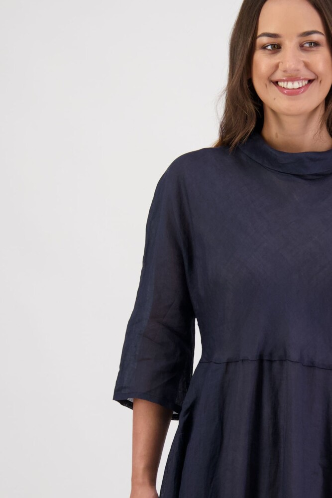Crafted in both printed and plain 100% ramie, the Rowena Dress is designed with a soft roll neckline and a flattering bias-cut bodice. Finished with 3/4 length sleeves, a subtle puff hem detail, functional pockets and a fully lined interior for effortless wear and comfort.