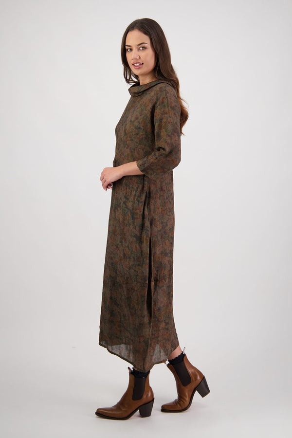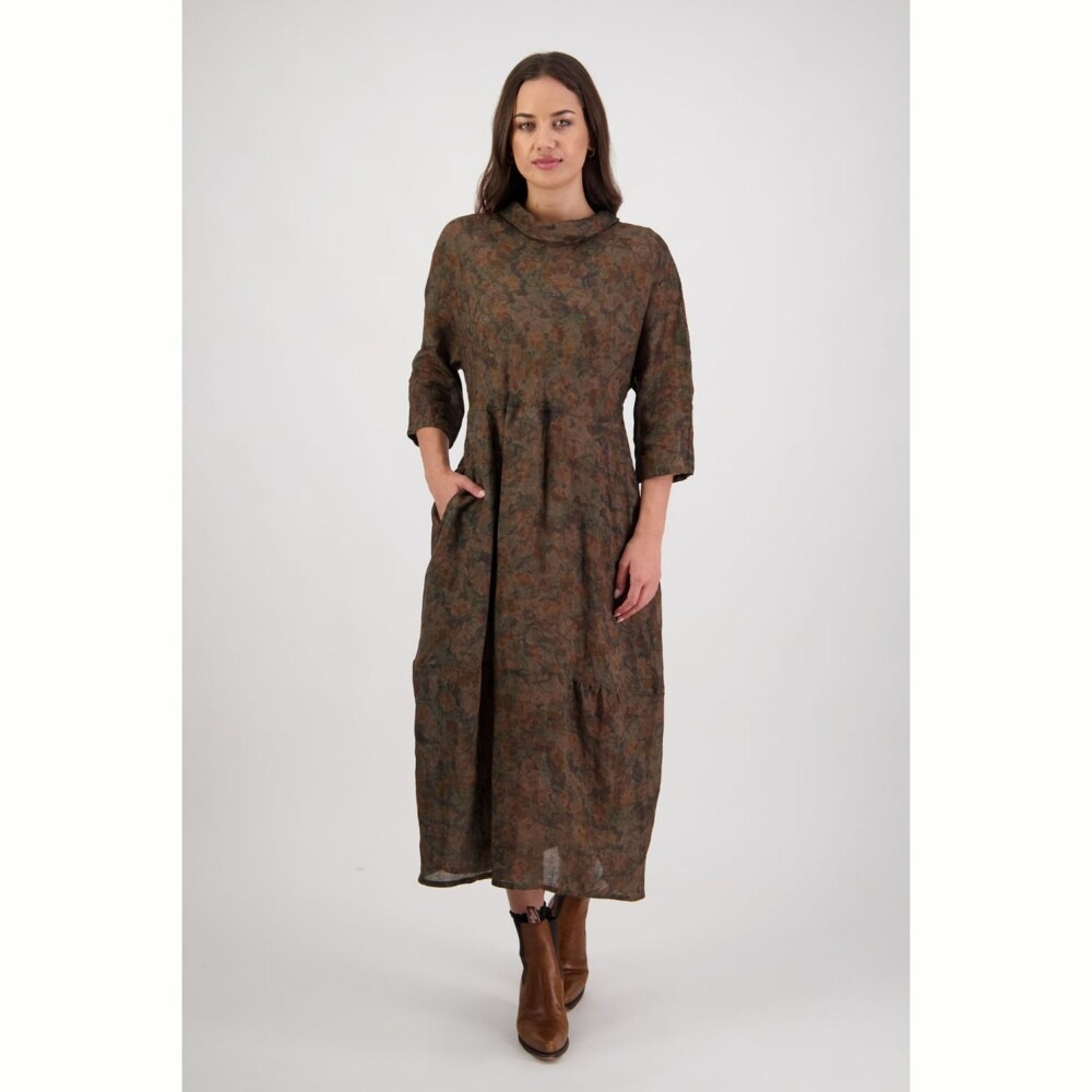 Crafted in both printed and plain 100% ramie, the Rowena Dress is designed with a soft roll neckline and a flattering bias-cut bodice. Finished with 3/4 length sleeves, a subtle puff hem detail, functional pockets and a fully lined interior for effortless wear and comfort.