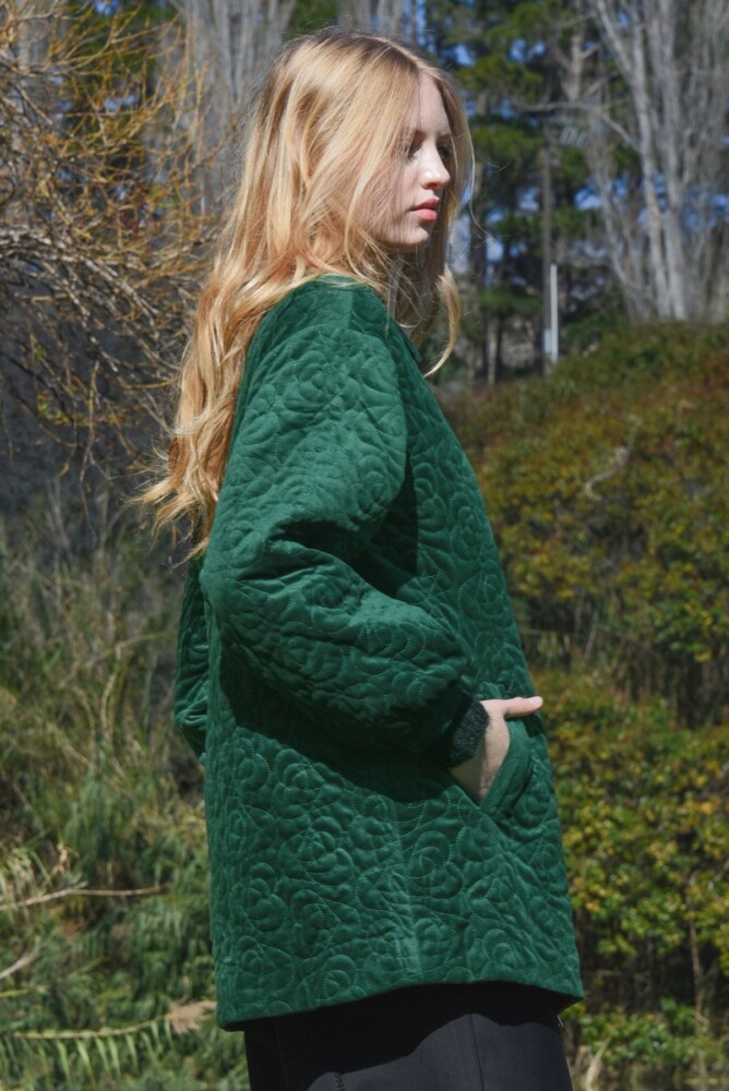 A rich floral quilted velvet elevates the ‘Proven Quilty’ jacket, crafted in ‘Quilty by Suspicion’. Its dual-ended zip front allows versatile styling, while blouson sleeves with fixed cuffs add subtle volume and shape. Thoughtfully designed with side pockets and a fully lined interior, this jacket blends tactile luxury with modern, fashion-led functionality.