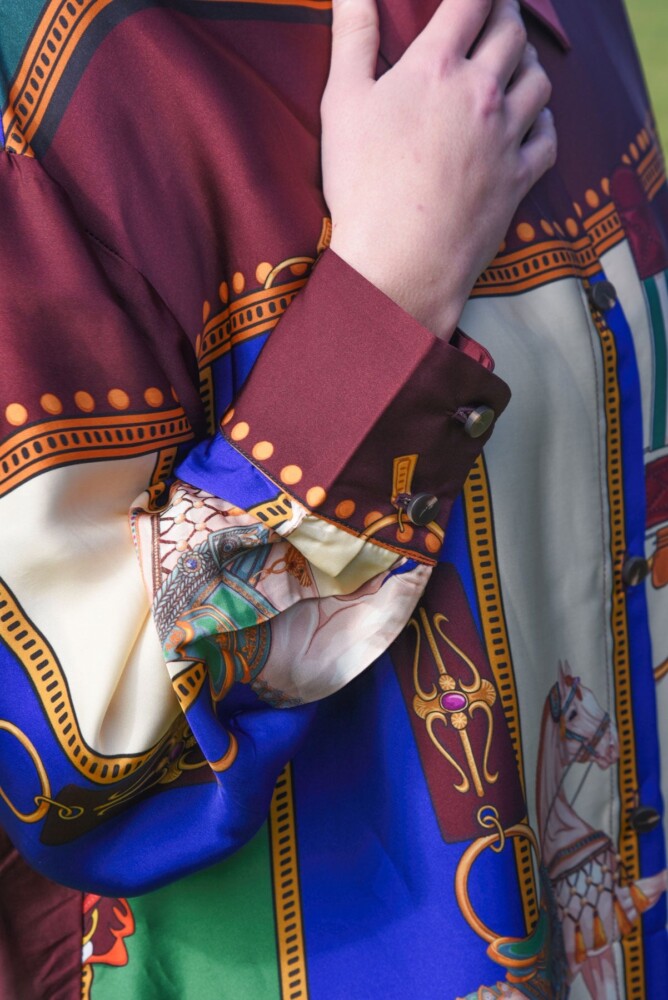 Bringing back the ‘Let the Sun Shine’ shirt, dazzling in the bold fall palette that elevates this classic ‘Cooper’ silhouette into a statement piece. Crafted for effortless luxury in ‘The Mane Event’ viscose satin fabrication, its simple long sleeves and clean lines let the rich fabric do all the talking. Featuring side vents that can be tucked into tailored trousers or worn loose with jeans, it’s a versatile essential that brings an artful, sophisticated edge to every look.