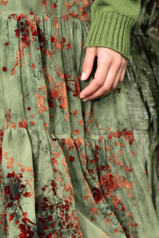 Full of whimsy the ‘Skirty Girl’ skirt intertwines wearability with high-fashion drama. Crafted in the ‘Just Meshing With You’ burnout velvet mesh, this skirt showcases a delicate botanical print perfect for moody days. With a semi sheer fabrication this skirt is cleverly designed with a ½ lining allowing for an interesting, multi-dimensional look.