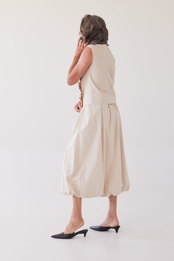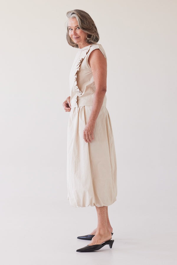 The Ziggy Skirt is cut from a premium cotton prima in a timeless almond shade.