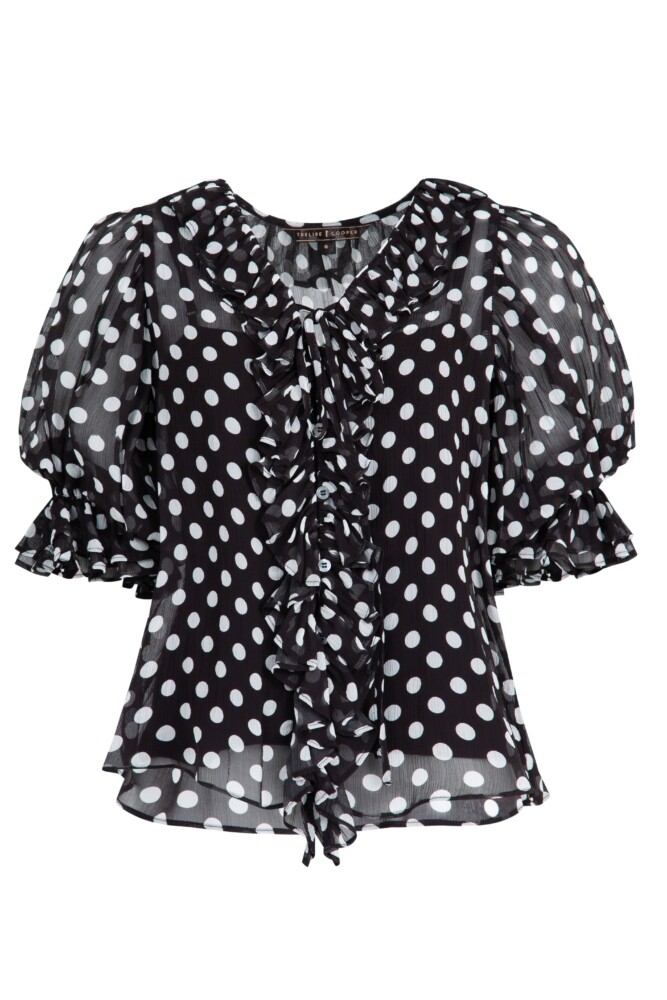 Showcasing a classic spot fabrication with a contemporary silhouette, the ‘Ruffle My Love’ blouse is the versatile wardrobe hero you need. Rendered in the sought after ‘Feeling Dotty’ fabrication, this sweet blouse showcases puff sleeves, complemented with elasticated cuffs crafted to enhance shape. Buttoned through the front and finished with romantic ruffle detailing at the neckline, it boasts unmistakable charm easily dressed up in a pinch.