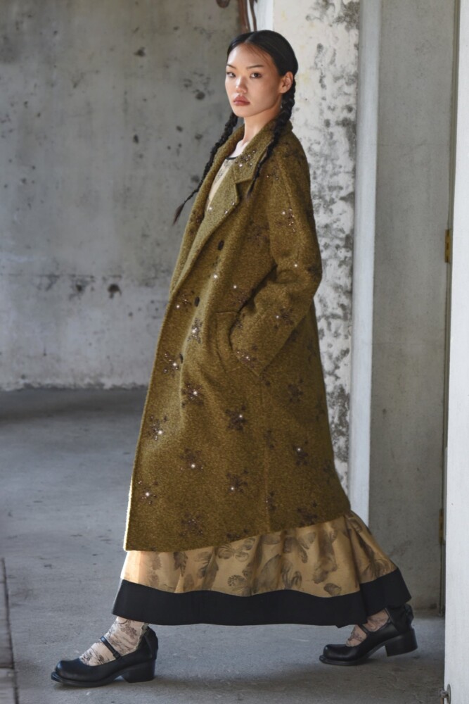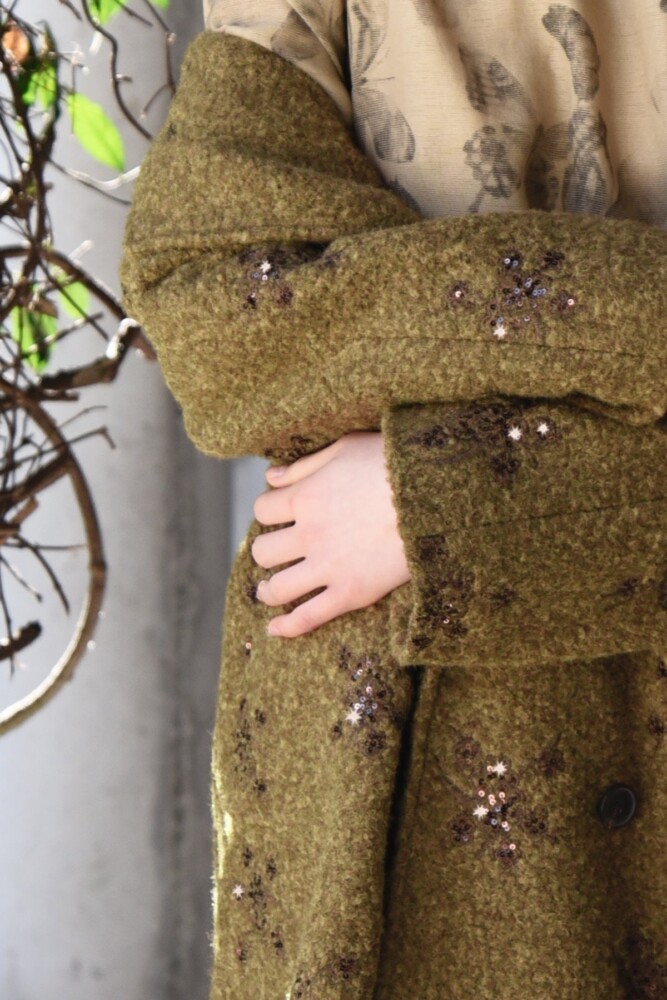 Sequin threaded ‘Sprinkle of Sparkle’ coating brings a refined glimmer to the ‘Warm This Way’ coat. Designed with a double-breasted closure and classic notched lapels, it features sculptural cocoon sleeves, practical side pockets and bound internal seams. Unlined for effortless layering, it delivers understated sparkle with a modern, fashion-led edge.